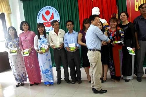 Thầy Ngô Chinh trao tặng quà là 3 phần mềm Violet 1.8 cho 3 thầy cô trường THCS Nguyễn Khuyến Đà Nẵng