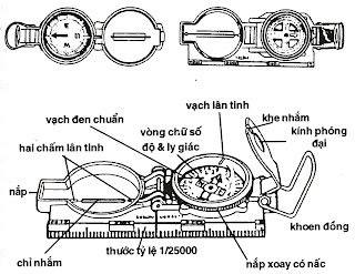 Sau đó kim từ hóa được gắn vào một cái chén đã có ghi phương hướng, thường là bốn phương chính Ðông, Tây, Nam, Bắc và bốn phương bàng: Ðông Nam, Ðông Bắc, Tây Nam và Tây Bắc. Về sau, còn thêm tám hướng phụ nữa như Bắc Ðông Bắc, Tây Tây Nam vân vân. Người ta cũng dần dần biết đến sự lệch của từ trường, độ từ thiên, độ từ lệch và các sự biến thiên này thay đổi theo vị trí của từng nơi, từng khu vực. (góc lệch từ, declination, từ thiên variation magnétique hay magnetic variation).
