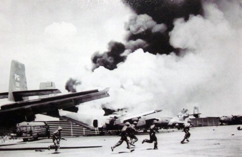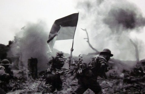 | Quân giải phóng đánh sân bay Tân Sơn Nhất ngày 30/4/1975. Ảnh: Đinh Quang Thành |