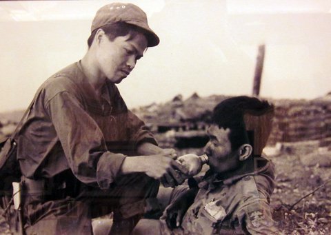 | Bộ đội chăm sóc tù binh ngụy bị thương tại mặt trận đường 9 Nam Lào, 1972 |