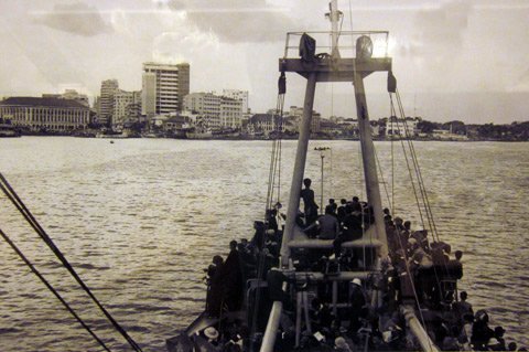 | Tàu hải quân của ta đón các chiến sĩ bị địch bắt tù đày ở Côn Đảo trở về Sài Gòn |